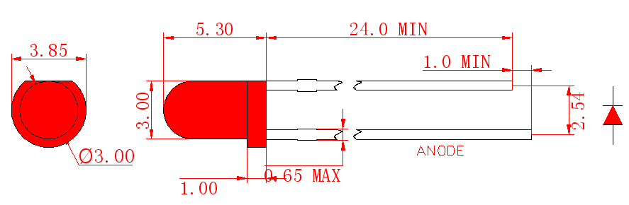 Lámpara LED redonda roja de 3 mm (LL30SR1D50-60)