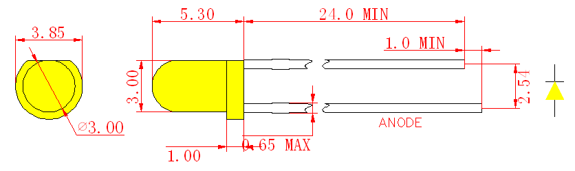 Lámpara LED redonda amarilla de 3 mm (LL30UY3D60-200)