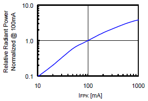 HIGO. 3 Radiante relativo vs. Corriente directa HIGO. 4 Radiante relativo vs. Corriente máxima directa