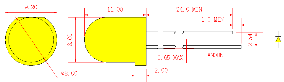 Lámpara LED redonda amarilla de 8 mm (LL80UY3D30-300)
