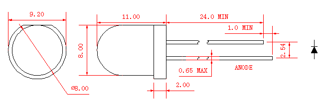 2.La tolerancia es de ±0,25 mm (0,01˝) a menos que se especifique lo contrario; La tolerancia de la intensidad luminosa es ±10%;