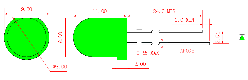 Lámpara LED redonda verde puro de 8 mm (LL80PG2D60-2000)