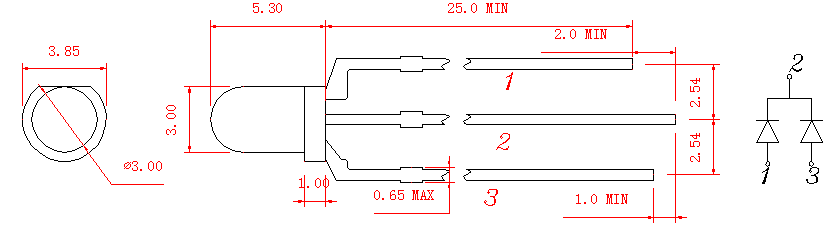 Lámpara LED redonda roja/azul de cátodo común de 3 mm
